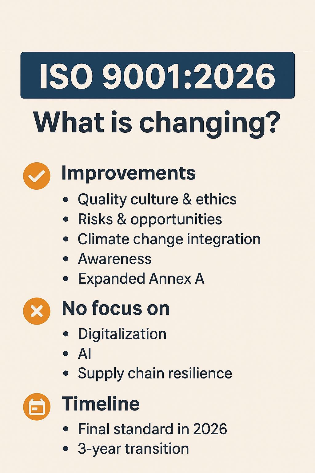👉 Fazit: Die ISO 9001 bleibt vertraut, wird aber gestärkt – mit Fokus auf Kultur, Ethik und Klarheit.